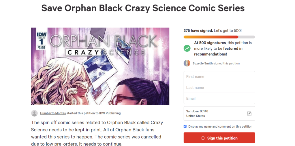 So, expanded universe? Not quickly, perhaps, but these efforts prove that Clone Club will never die. One passionate soul, Humberto Montes, encapsulates the diehard nature of the show’s fandom by starting a petition asking IDW to release Crazy Science. To date, Montes has only garnered 375 out of the 500 signatures needed. Nonetheless, I’ll say it louder for those sitting in the back rows: Clone Club will never die!