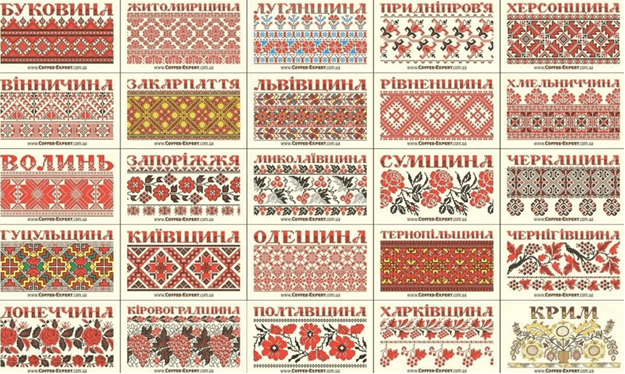 Ukrainians can tell someone’s home region by the vyshyvanka they’re wearing. Different colors, patterns, and designs relate tales and traditions sacred to different regions or oblasts. The vyshyvanka I own, for example, represents the Hutsul region of southwest Ukraine, and relies heavily on geometric patterns and cross-stitching. Alternatively, designs from central or eastern Ukraine might be white-on-white, red-blue, or red-black. Some regions focus on plant imagery, and colors vary.